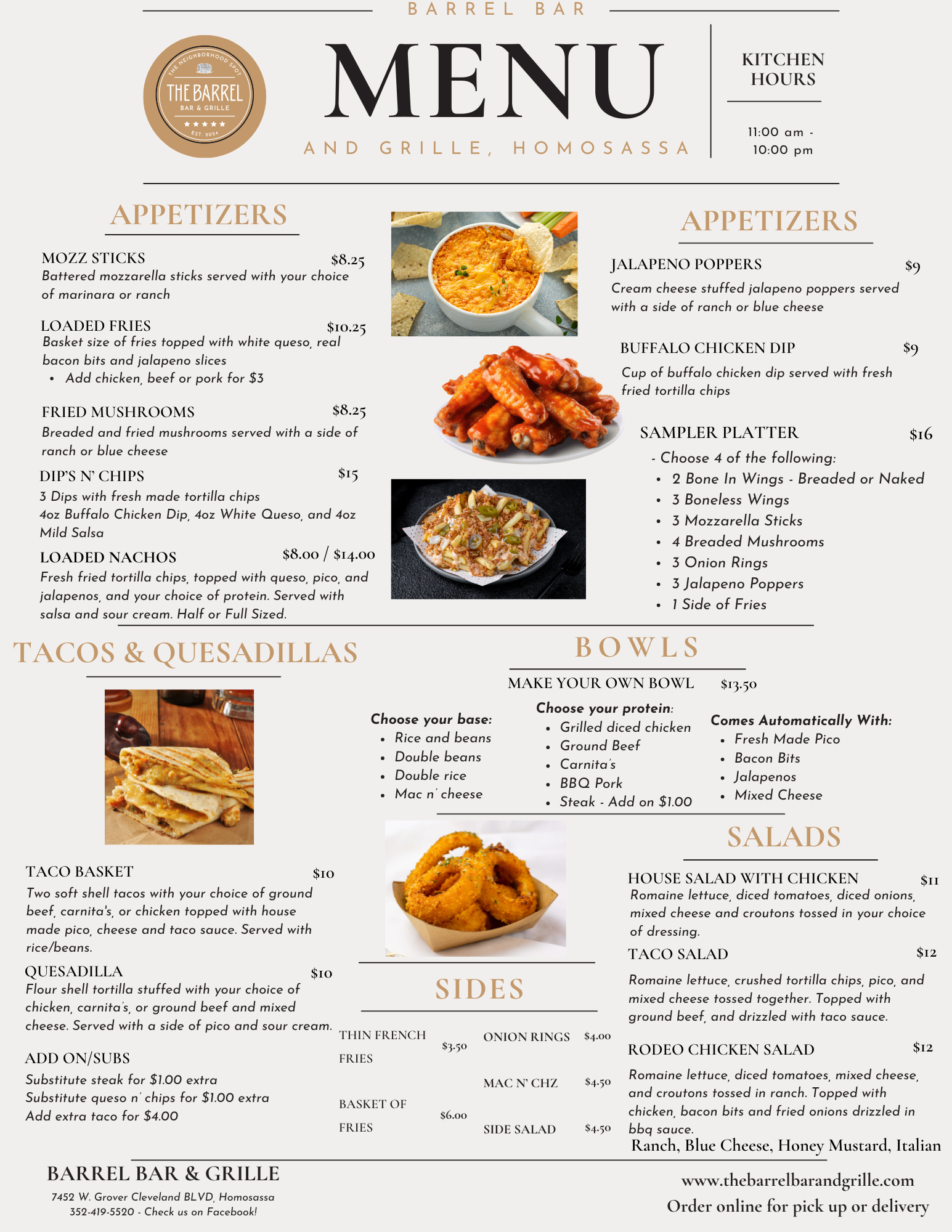 When we first opened, we were finishing up our kitchen and now we have our full menu!